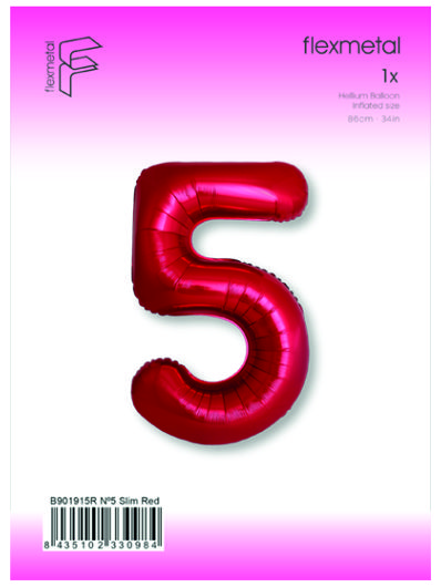 B901915R  NUMBER 5 SLIM 34"/86cm RED